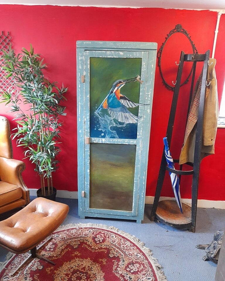 Tiger on a three door wardrobe currently available for sale. Please use the contact us page if you have a custom idea for furniture art.