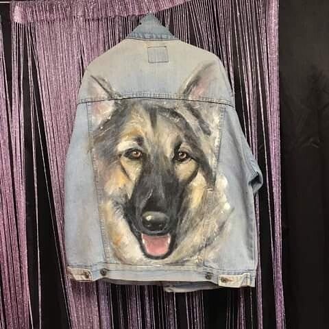 German Shepherd on a denim Jacket