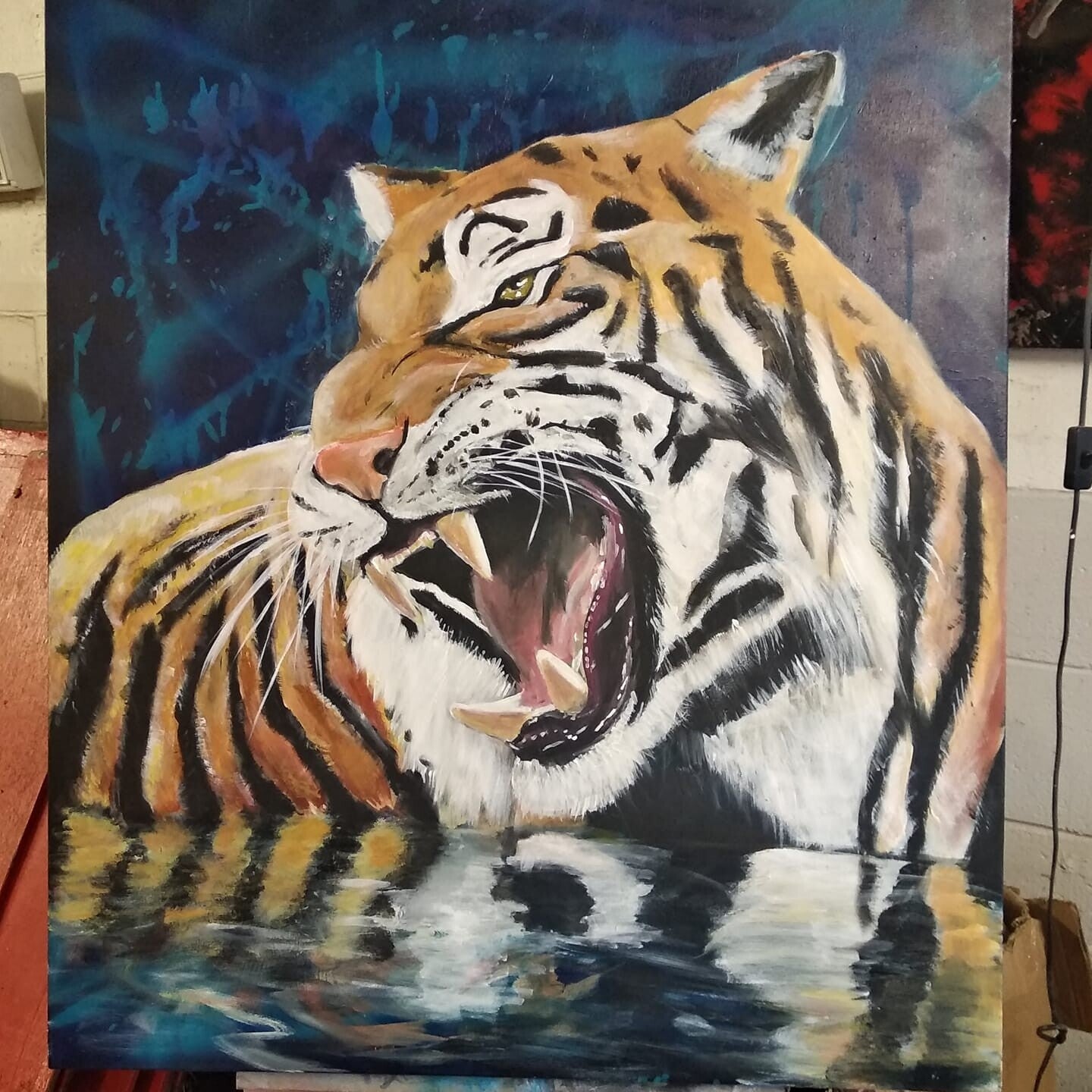 Tiger on Canvas in water.